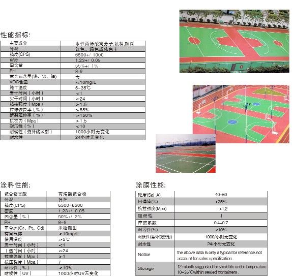 2.丙烯酸球場品質(zhì)穩(wěn)定,防紫外線照射,阻燃,防水。