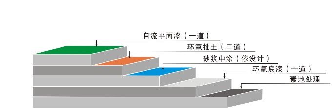 ⑤環(huán)氧批土:依實(shí)際需要施工數(shù)道,地坪漆要求達(dá)到平整無孔洞,無批刀印及砂磨印為準(zhǔn);